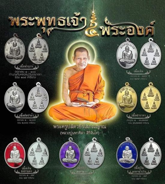เหรียญ พระพุทธเจ้า๕พระองค์ ปี64 หลวงปู่มหาศิลา หลวงปู่ศิลา สิริจันโท สวนสงฆ์แกเปะ วัดโพธิ์ศรีสะอาด จ.กาฬสินธุ์ เนื้อฝาบาตร เลข ๓๙๓๕ มีกล่องเดิม พระคัดผิวสวย ขอบไม่แตกไม่ลาน |