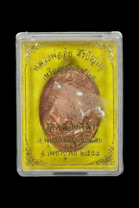 เหรียญหลวงพ่ออุ้ย อัมตะรุ่น1 วัดคลองคล้า อ.ชนแดน จ.เพชรบูรณ์ ปี2558 เหรียญทองแดง ตอดโค๊ต +เลข752 พร้อมกล่อง ห่วงเชื่อมหลุดตามภาพ เคาะเดียว |