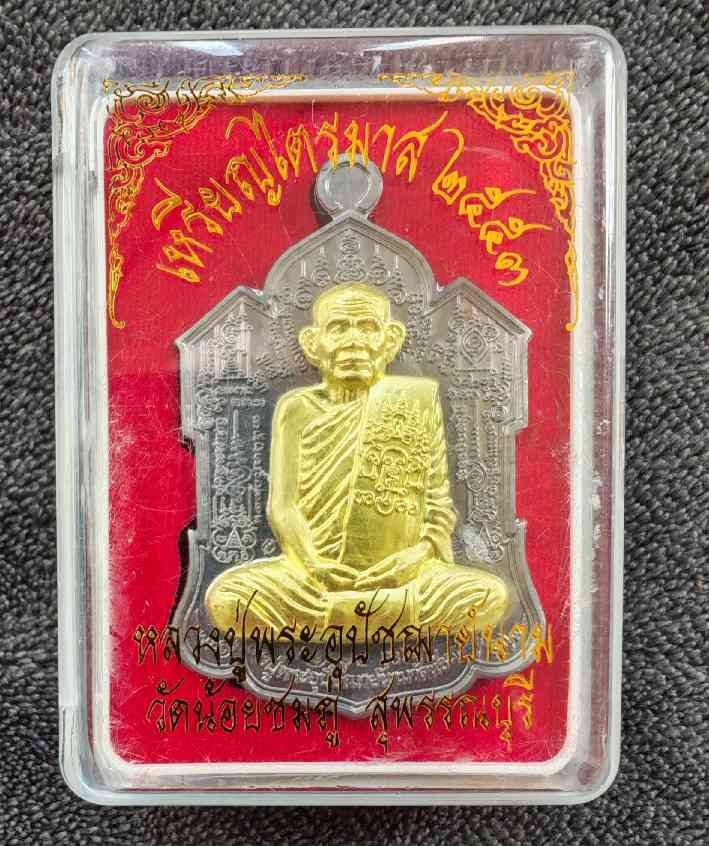 เหรียญจิ๊กโก๋ไตรมาส 2553 เนื้อตะกั่วหน้าฝาบาตร ลป นาม วัดน้อยชมภู่ เลข 179 |
