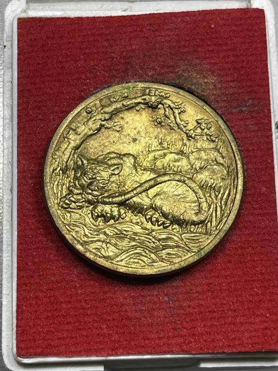 เหรียญพญาเสือเฒ่า เนื้อฝาบาตร พระอาจารย์ประสูติ วัดในเตา แช่น้ำมันเสือ