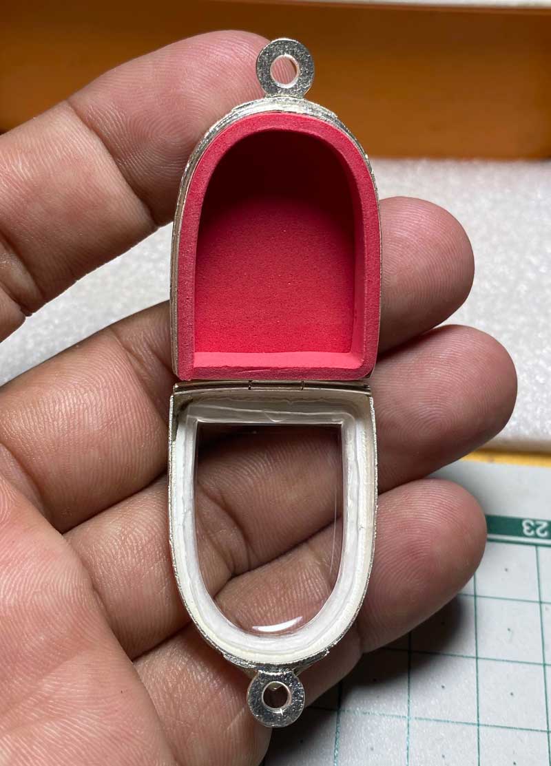ตลับเงินสั่งตัดหนาๆ เงินเปอร์เซนดี หลังแกะลายพรหมสี่หน้า เหมาะใส่พระซุ้มกอหรือพระที่มีขนาดใก้ลเคียง ทำมา2พันกว่า ไม่เคยแขวนใช้งาน ใส่พระวางไว้เฉยๆครับ สภาพสวยงามตามภาพ **รับประกันตามกฎ** ขนาดจอพลาสติก2.1x2.9ซ.มความหนา1ซ.ม |