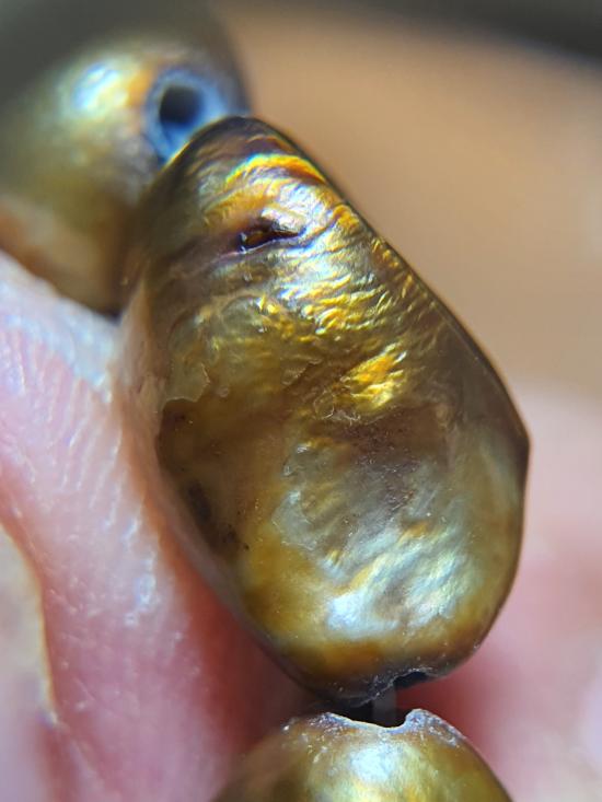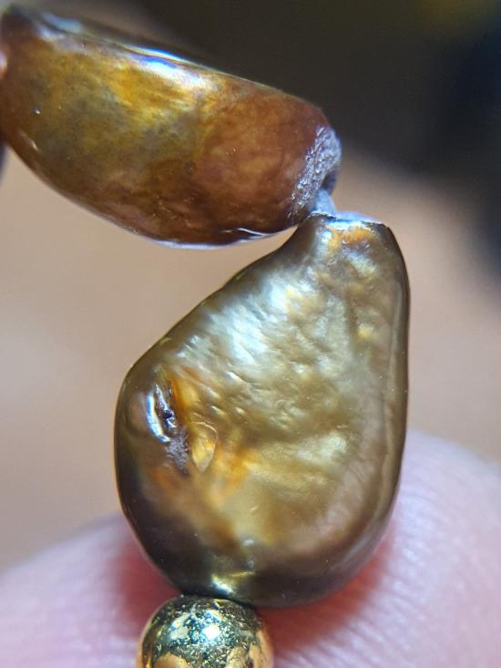 สร้อยไข่มุกน้ำจืดร้อยคั่นด้วยหินใสสีอำพันเหลืองยาว 18นิ้ว |