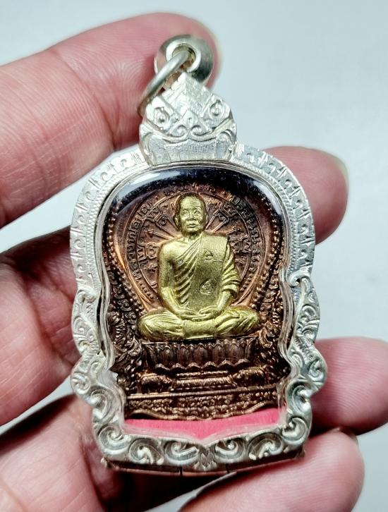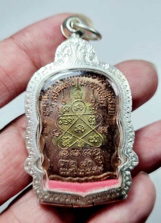 นั่งพานชนะมาร หลวงปู่บุญ วัดปอแดง เนื้อกรรมการทองแดงองค์ฝาบาตร พร้อมกรอบ |