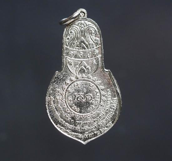ด้านหลังเหรียญระบุว่า "ที่ระลึกในการเสด็จ วางศิลาฤกษ์ อาคารเรียนศูนย์การศึกษาคณะสงฆ์ปราจีนบุรี"สุ จุิ ปุ ริ อะ สัง วิ สุ โล ปุ สะ พุ พะ”