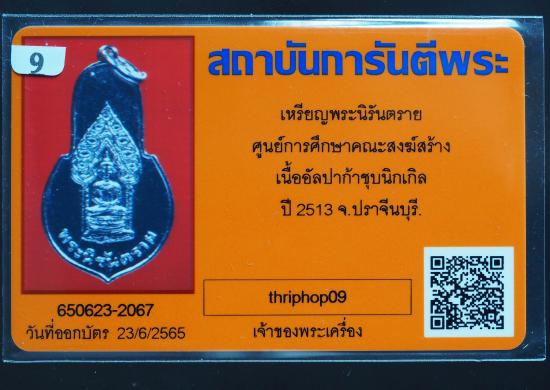 รายละเอียด เหรียญนิรันตราย ศูนย์การศึกษาคณะสงฆ์ วัดหลวงปรีชากูล ปราจีนบุรี ปี พ.ศ.2513 เนื้ออัลปาก้าชุบนิเกิล พร้อมบัตรรับรอง