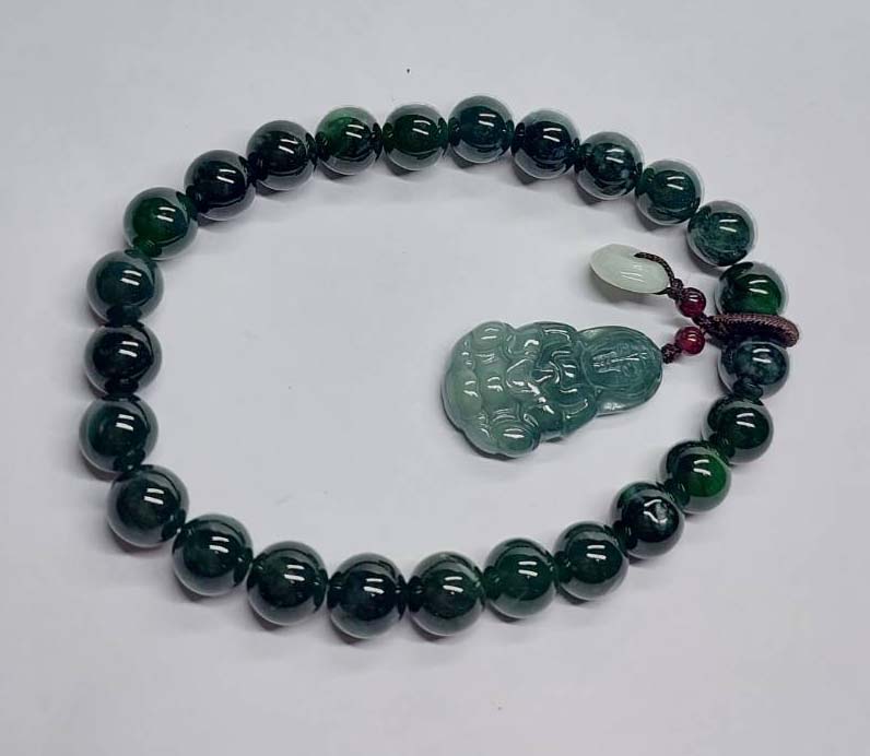 ***วัดใจ***สร้อยข้อมือ หยกจักรพรรดิ์ พร้อมจี้ เม็ด 8 มิล สวยๆ |