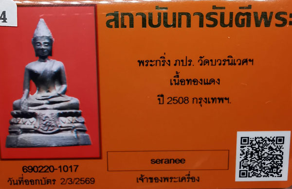 พระกริ่งภปร. วัดบวรนิเวศฯ เนื้อทองแดงรมดำ กริ่งดัง อปี2508 จ.กรงเทพฯ + บัตรG-pra สภาพสวยเดิมค่ะ สภาพตามรูปทุกประการค่ะ
