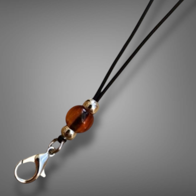 สร้อยห้อยพระ สร้อยเชือกแต่งลูกปัดอะคริลิคสีน้ำตาลแดง+ลูกปัดโลหะ พร้อมก้ามปู ตัวสร้อยปรับความยาวได้ .79-