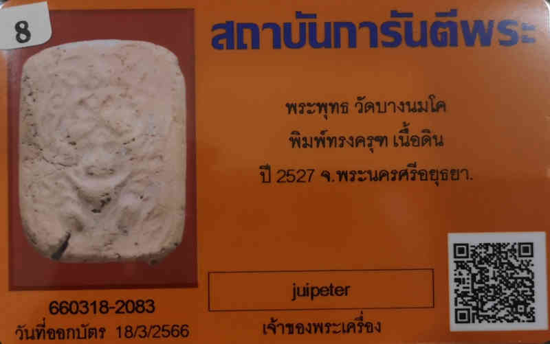 รายการนี้เป็นพระเนื้อดินเผาพิมพ์หลวงพ่อปานทรงพญาครุฑ วัดบางนมโค พระองค์นี้จัดสร้างในปี พ.ศ.2527 มีมวลสารเก่าของพระหลวงพ่อปานผสมอยู่เป็นจำนวนมาก กำลังเป็นที่นิยม ใช้แทนพระหลวงพ่อปานยุคแรกองค์หลักแสน หลักล้านได้อย่างสบายใจ
