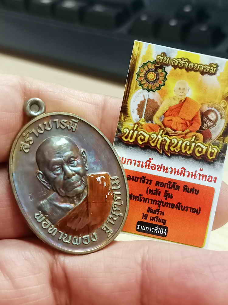 วัดใจ 100 เหรียญสร้างบารมี พ่อท่านผ่อง วัดแจ้ง อ.เมือง จ.พัทลุง 2567 ชนวนผิวน้ำทอง ลงยาจีวร หลังหน้ากากทอง หมายเลข 15 สร้าง 19 กล่องเดิม***ACI ดูแล |