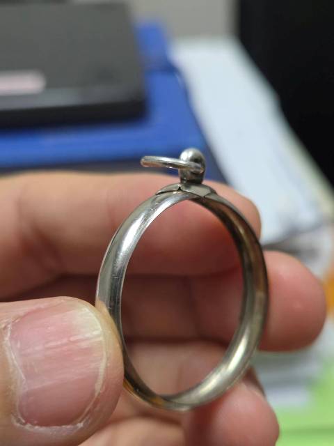 กรอบเงินลายผ่าหวาย (มือ 2) น้ำหนัก 1.9 กรัม เส้นผ่าศูนย์กลาง ประมาณ 2.7 ซม.งานเก่า ลายเรียบ สวยๆครับ |