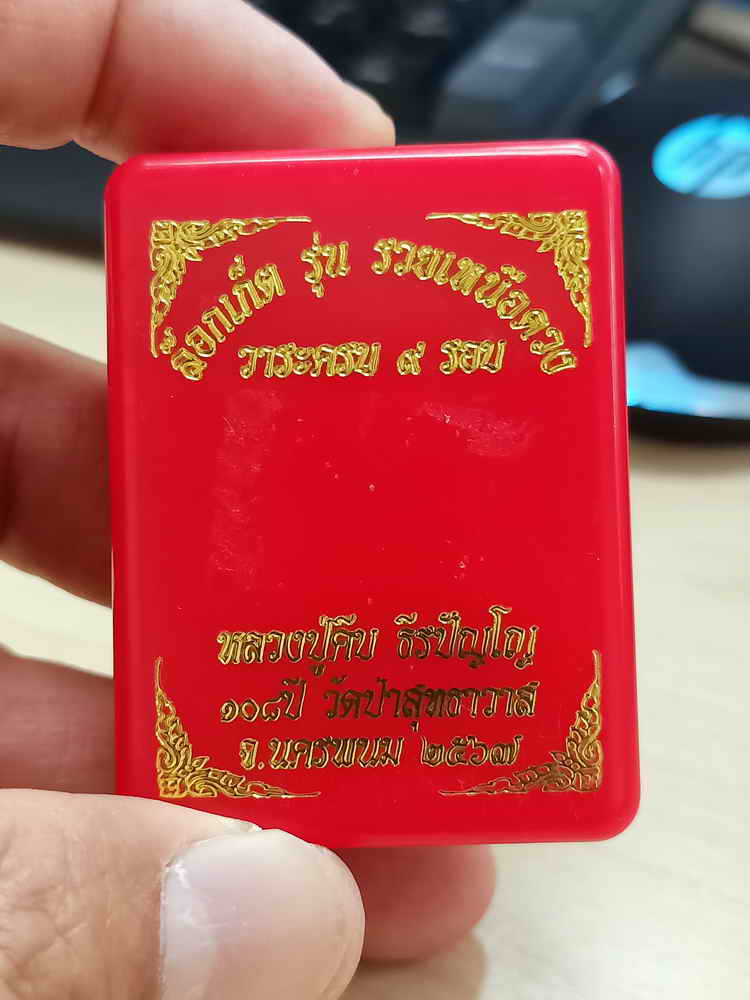 วัดใจ 100 ล็อกเก็ต รวยเหนือดวง 9 รอบ หลวงปู่คีบ ธีรปัญโย วัดป่าสุทธาวาส จ.นครพนม 2567 ฉากส้ม หมายเลข 185 กล่องเดิม |