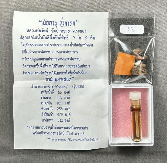 ***พร้อมน้ำมันสีผึ้งที่ใช้ปลุกเสกบรรจุขวดเดิมๆ และจีวรเสกหลวงพ่อรัตน์ |