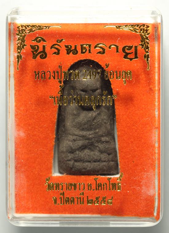 ว่าน หลวงปู่ทวด พิมพ์พระรอดหน้าใหญ่ ย้อนยุค2497 เนื้อว่านคลุกรัก ฝังตะกรุดทองแดง รุ่นนิรันตราย วัดทรายขาว จ.ปัตตานี ปี 2558 |