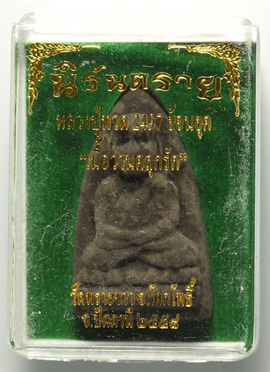 ว่าน หลวงปู่ทวด พิมพ์ใหญ่หัวขีด ย้อนยุค2497 เนื้อว่านคลุกรัก ฝังตะกรุดทองคำแท้ รุ่นนิรันตราย วัดทรายขาว จ.ปัตตานี ปี 2558 |
