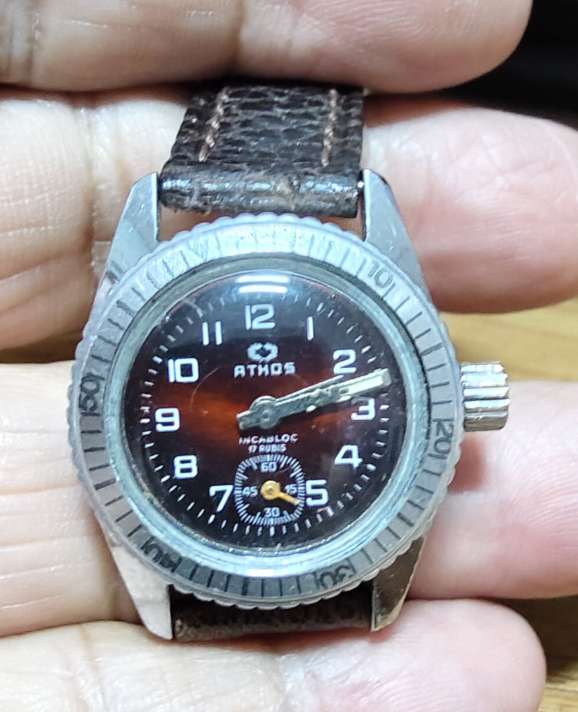 นาฬิกาผู้หญิงทรงดำน้ำ ATHOS ระบบไขลาน 2 เข็มครึ่ง เดินดีใช้งานปกติ |