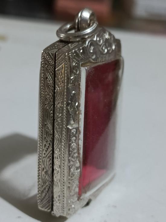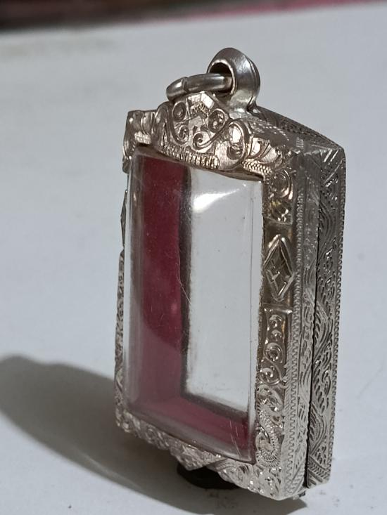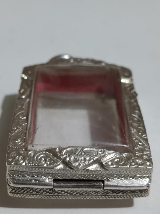 ตลับเงินแท้เก่า เปิดหลังแกะลายกนกเก่า สั่งตัดพิเศษ สั่งทำห่วงใหญ่ ใส่พระสมเด็จ หนาหนัก 21.42 กรัม งานเก่าสนามแพงหมดแล้วครับ