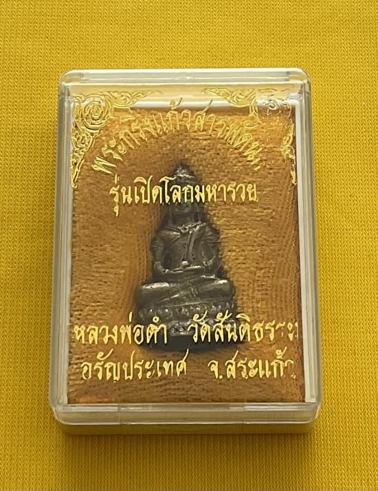 พระกริ่งแก้วสารพัดนึก รุ่นเปิดโลกมหารวย เนื้อทองผสมอุดผงมหาภูติลิ้นทอง หลวงพ่อดำ วัดสันติธรรม ปี 2552 พร้อมกล่องเดิม ผู้ประมูลได้โอนแล้วแจ้งใน In box ด้วยนะครับ |