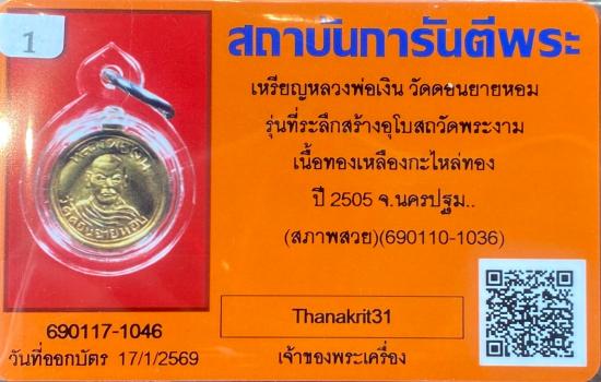 << บัตรสภาพสวย >> เหรียญกลมเล็ก หลวงพ่อเงิน วัดดอนยายหอม (( หายาก กะไหล่ทองเดิม แจกกรรมการ )) ออกวัดพระงาม ปี 2505 |