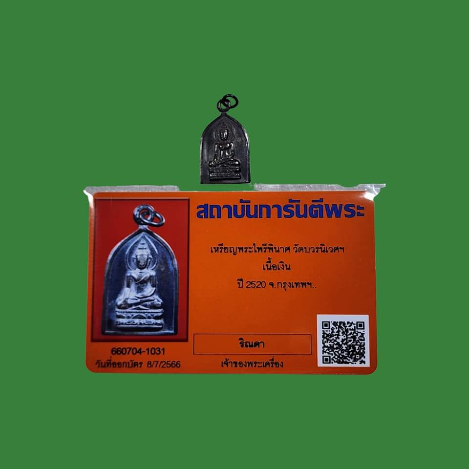 เหรีญพระไพรีพินาศ วัดบวรนิเวศฯ พ.ศ.2520 เนื้อเงิน รุ่นเขาค้อ สภาพสวยตามรูป พร้อมบัตรรับรอง
