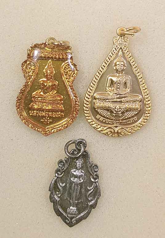 เหรียญพระพุทธ 3 เหรียญ +เข็มกลัดหลวงพ่อโสธร วิทยาลัยครู แปดริ้ว 2 ชิ้น |