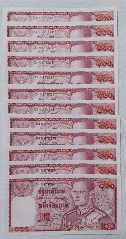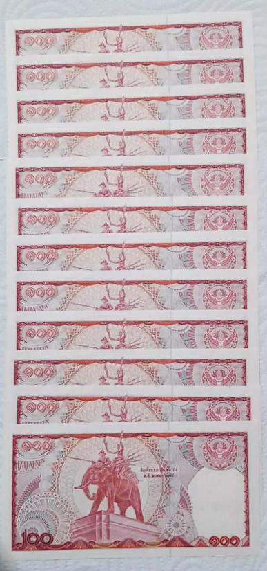 ธนบัตร 100 บาท รัชกาลที่ 9 แบบ 12 ช้างแดง เลข 6 หลัก เลขเรียงจำนวน 12 ใบ สวยไม่ผ่านการใช้งาน UNC ไม่พับ ไม่ยับ ไม่สนิม ไม่เหลือง สวยกริป |