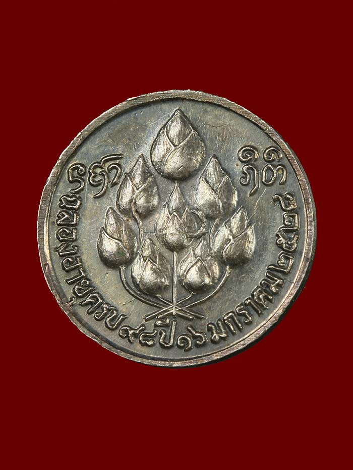 วัดใจ หลวงปู่แหวน รุ่นเหรียญกลมเล็ก หลังบัว ปี28 เนื้อเงิน
