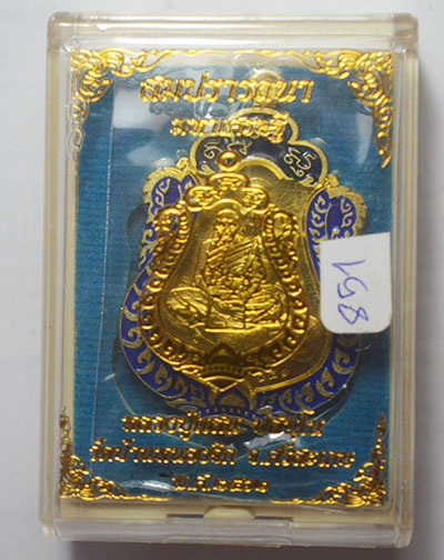 เหรียญเสมา สมปราถนา มหาเศรษฐี 62 หลวงปู่แสน วัดบ้านหนองจิก ศรีสะเกษ เนื้อทองทิพย์ ลงยอขอบน้ำเงิน เลข 851