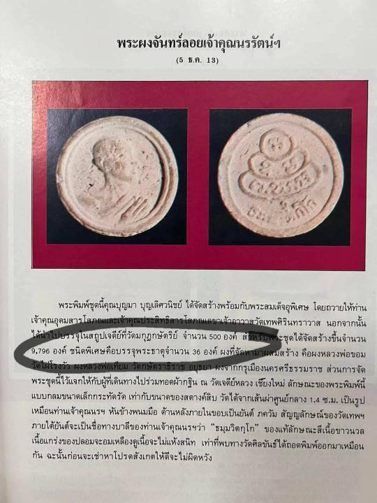 พระผงจันทร์ลอย ท่านเจ้าคุณนรฯ วัดเทพศิรินทร์ เนื้อผง จ.กรุงเทพ ปี 2513 ***พระเนื้อผงสภาพมีรอยราน ตามภาพประกอบ องค์พระมีเม็ดมวลสารตามภาพ เลี่ยมพลาสติกกันน้ำ***