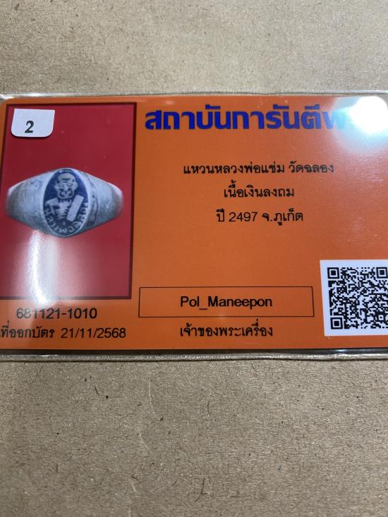 แหวนหลวงพ่อแช่ม พิมพ์หน้ากะโหลก เนื้อเงินลงถมโบราณ วัดฉลอง จ.ภูเก็ต ปี 2497 |