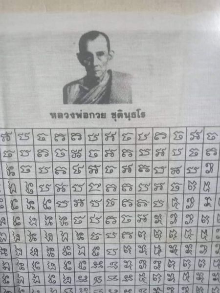 ผ้ายันต์ค่ายกล อะปะจะคะ (จักรณีย์) หลวงพ่อกวย วัดโฆสิตาราม ย้อนยุค สีขาว ปี 2539 (ขนาด 17 x 17 นิ้ว) ผืนใหญ่ |