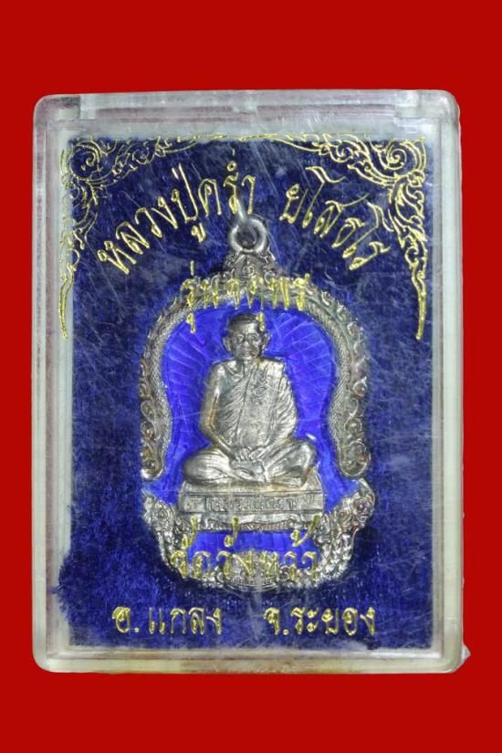 +++ เหรียญเนื้อเงินลงยาสีน้ำงิน หลวงปุ่คร่ำ กล่องเดิม +++