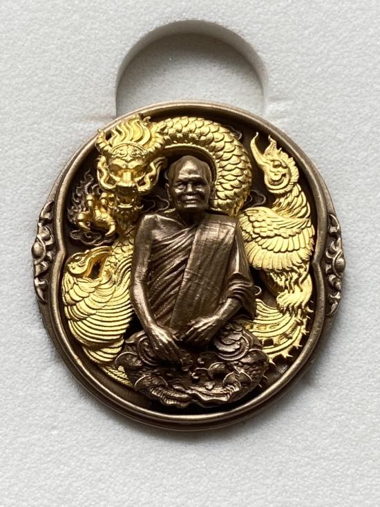 เคาะเดียวแดง หลวงปู่บุดดา รุ่น บารมีไตรมงคล เนื้อ สัมฤทธิ์มังกรหงส์ชุบทอง |