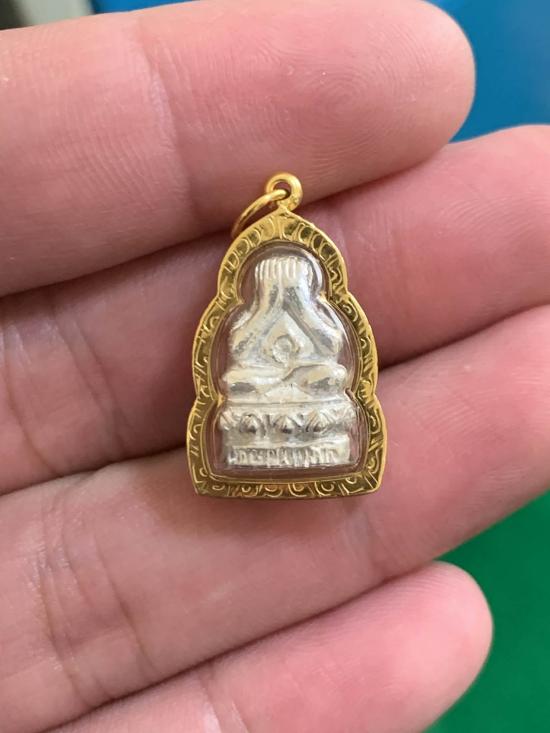 องค์ที่ 5 พระปิดตาสารพัดดี แช่น้ำมนต์ หลวงพ่อเกษม เขมโก เนื้อเงิน รุ่นพุทธคุณ ปี38 สภาพสวย มากมาก เลย เลี่ยมทองพร้อมห้อย