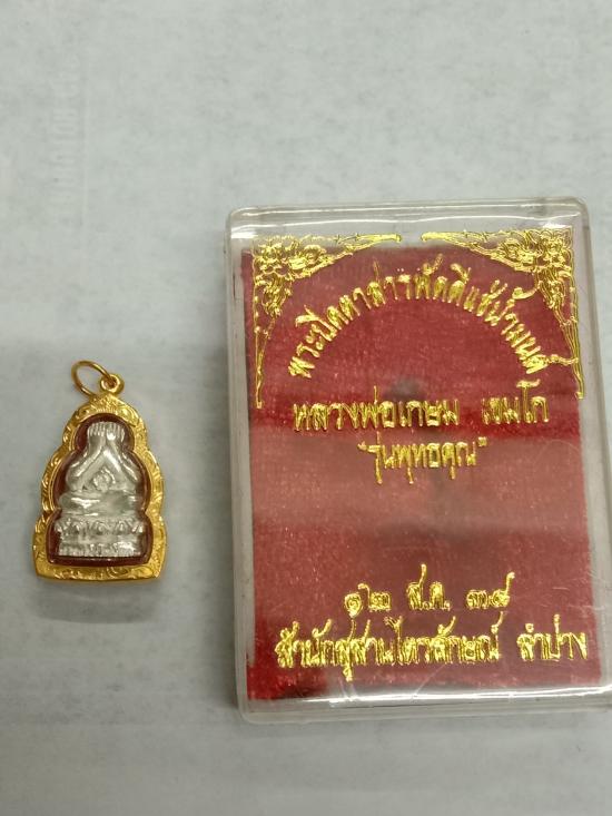 องค์ที่ 4 พระปิดตาสารพัดดี แช่น้ำมนต์ หลวงพ่อเกษม เขมโก เนื้อเงิน รุ่นพุทธคุณ ปี38 สภาพสวย มากมาก เลย เลี่ยมทองพร้อมห้อย