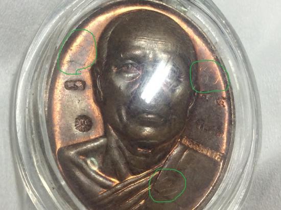 เหรียญหน้าโหดใจดี หลวงพ่อทอง วัดพระพุทธบาทเขายายหอม ปี ๒๕๕๕ จารหน้า ๓ ตัว หลังจาร ๔ ตัว ยุคต้นบนเขาครั |