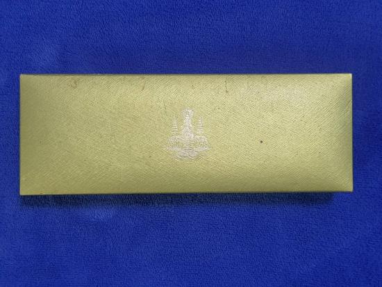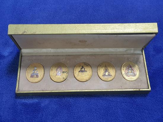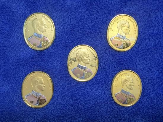 เหรียญพระพุทธปัญจภาคี เนื้อทองแดงชุบสามกษัตริย์ พิมพ์ใหญ่ ที่ระลึกพระราชพิธีกาญจนาภิเษก ในหลวงรัชกาลที่ 9 ปี พ.ศ.2539 ประกอบด้วยเหรียญ พระมงคลบพิตร พระนิรันตราย พระพุทธชินราช พระพุทธชินสีห์ พระพุทธโสธร ด้านหลังรัชกาลที่ 9 พร้อมกล่อง |