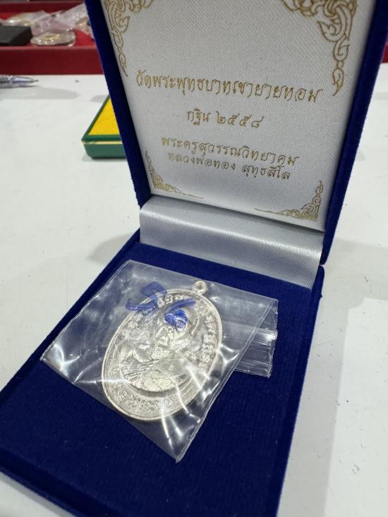 หลวงพ่อทอง วัดบ้านไร่ เหรียญกฐิน ปี2558 เนื้อเงิน no.56 มีกล่อง