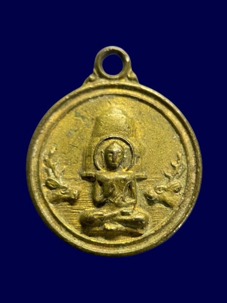 เหรียญปางปฐมเทศนา หลวงพ่อเงิน วัดดอนยายหอม จ.นครปฐม รุ่นมฤคทายวัน ปี 2514 |