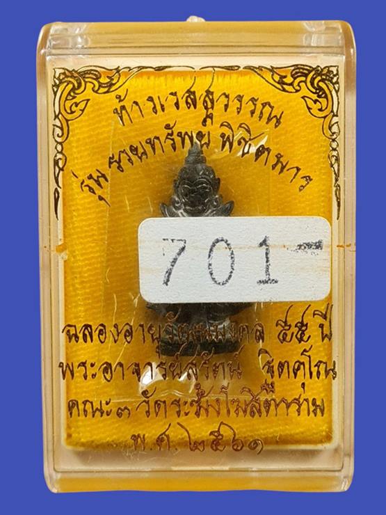 ## เนื้อนวะโลหะ เลข 701 ## ท้าวเวสสุวรรณ รุ่นรวยทรัพย์ พิชิตมาร วัดระฆังโฆสิตาราม ฉลองอายุวัฒนะมงคล ครบรอบ 55 ปี พระอาจารย์สุรัตน์ ฐิตคุโณ คณะ 3 วัดระฆังฯ เนื้อนวะโลหะ ครับ |