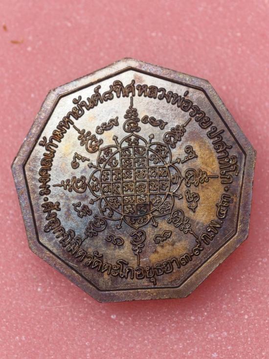 +++วัดใจ+++ เหรียญมงคลเก้ามหายันต์ 8 ทิศ หลวงพ่อรวย วัดตะโก จ.อยุธยา งานฝังลูกนิมิตร พ.ศ.2543