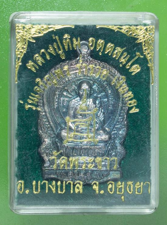 เหรียญนั่งพานหลวงปู่ทิม วัดพระขาว รุ่นเจริญพร ร่ำรวย เงินทอง เนื้อเงิน ปี 2539 สวยเดิม กล่องเดิม