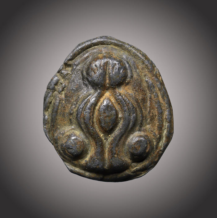 พระปิดตา(เนื้อตะกั้วหลังเรียบ)(ไม่ทราบที่)สภาพเก่ามีอายุ |