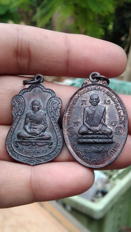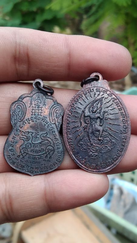 เหรียญหลวงพ่อพรหม นารายณ์เหยียบเมฆ คู่ เหรียญนพเก้า หลังสิงห์เส้น "ปั๊มย้อน " วัดขนอนเหนือ จ.อยุธยา |
