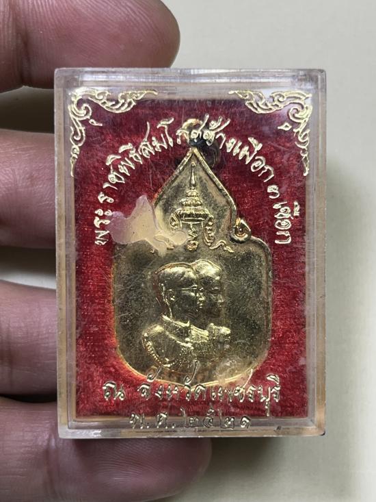 เหรียญพระราชพิธีสมโภชช้างเผือก3เชือก กะไหล่ทองเดิม พร้อมกล่อง