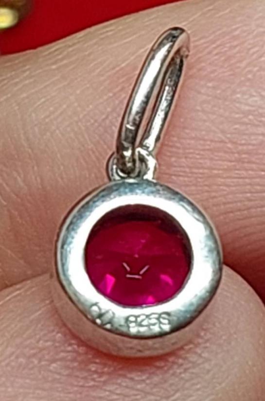 ***วัดใจ***จี้ทับทิม ทรงกลม ฝังอยู่ในตัวเรือนเงิน 925 งานนอก ขนาด 0.8มม. |