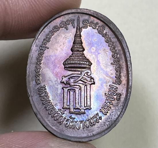 เหรียญหลวงพ่อเปิ่น วัดบางพระ เนื้อทองแดง หลังพระนามาภิไธยย่ิ ส.ธ. ปี 2537 กล่องเดิม