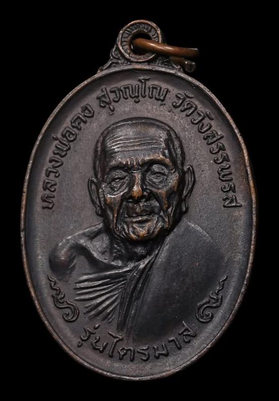 เหรียญไตรมาส หลวงพ่อคง วัดวังสรรพรส เนื้อทองแดงรมดำ ตอกโต้ด ค จ.จันทบุรี ปี 2518