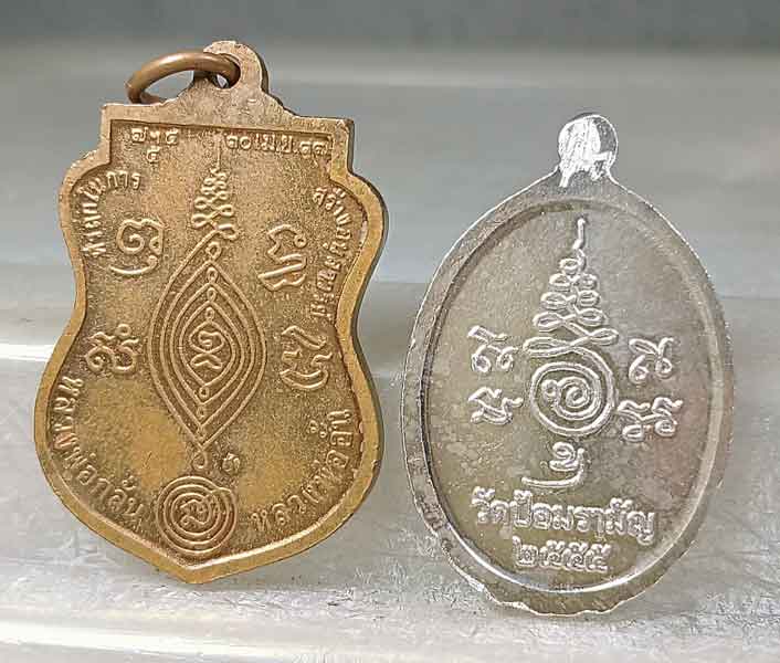 เหรียญหลวงพ่อกลั่น วัดพระญาติ อยุธยา ปี37 + เหรียญชูชก พระอาจารณ์แดง วัดป้อมรามัญ อยุธยา ปี55 |