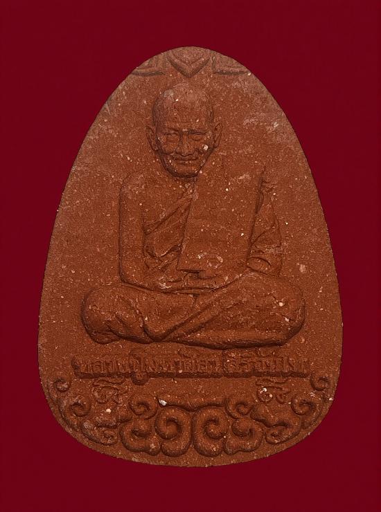 พระผงนั่งเมฆ หลวงปู่มหาศิลา สิริจันโท วัดโพธิ์ศรีสะอาด จังหวัดกาฬสินธุ์ เนื้อผงมวลสารสีแดง